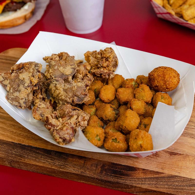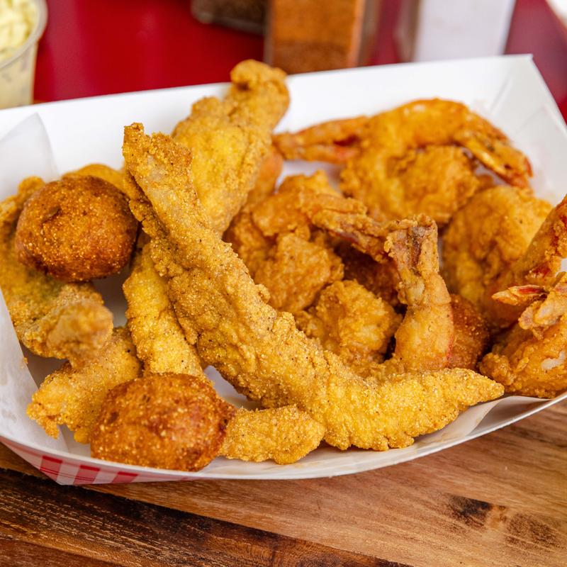 Enjoy the crispy perfection of our fried chicken and fish, served hot and fresh with your favorite sides. From juicy tenders and seafood platters to mouthwatering burgers and poboys, we’ve got something for everyone. Don’t forget to treat yourself to a creamy shake or a sweet scoop of ice cream!